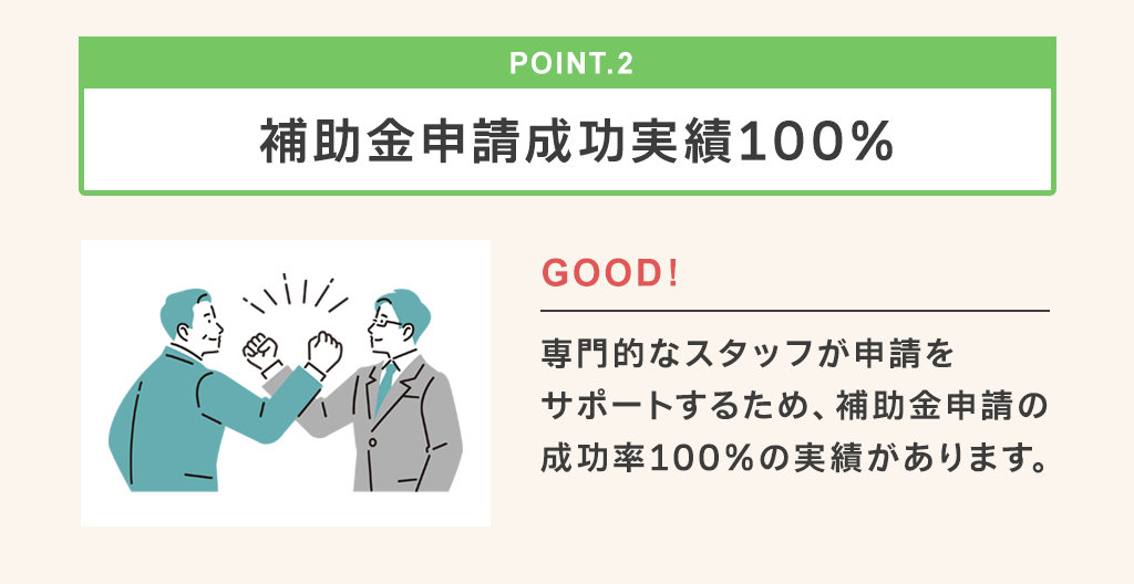 | ◎ 100% 補助金申請 成功実績 ※2 | ○ | ○ |