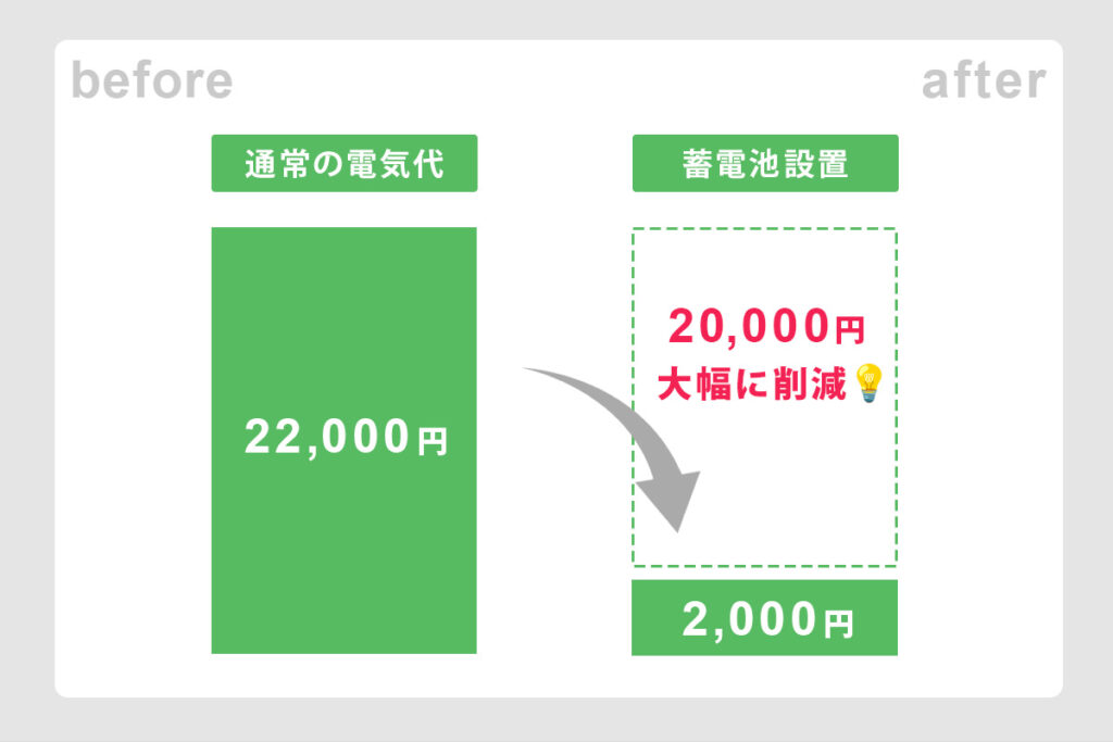 実際に何もしていない通常の電気代と「家庭用蓄電池+太陽光パネル」を設置した電気代を比較すると、